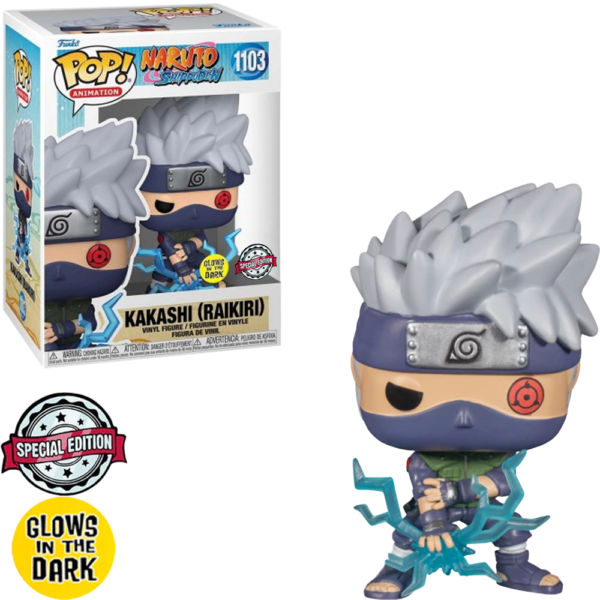 Conteúdo do pacote: Boneco Funko Pop Animation Naruto Shippuden Exclusive – Kakashi (Lightning Blade/ Gloes in the Dark) 1103