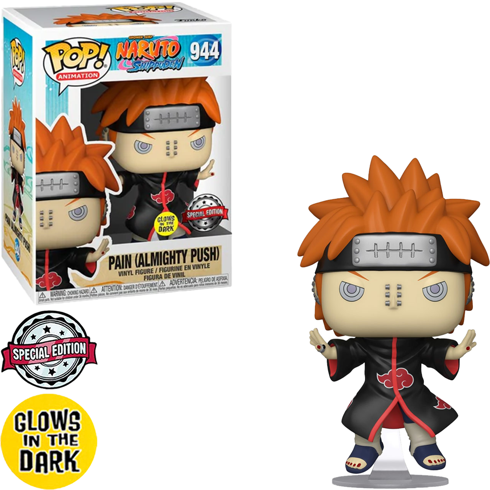 Conteúdo do pacote: Boneco Funko Pop Naruto Shippuden Exclusive – Pain (Almight push) 944 (Brilha no escuro)